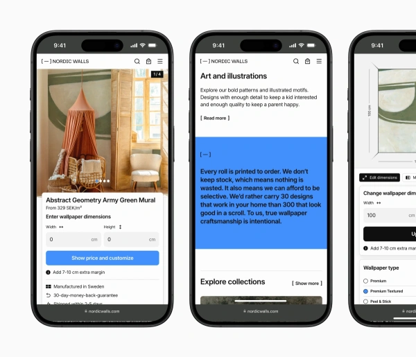 Nordic Walls säljer inte bara tapeter, de ramar in hem och berättar historier utan att använda ett enda ord. Vi har tagit fram en visuell identitet och byggt en e-commerce där minimalism och precision låter tapeterna tala.