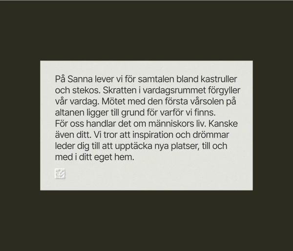 Sanna är det modiga byggföretaget som utmanar en bransch som gärna ritar i samma rutnät genom att sätta människan i centrum, från första mötet till sista skruven. Ett byggbolag som snackar empati lika gärna som kvadratmeter.