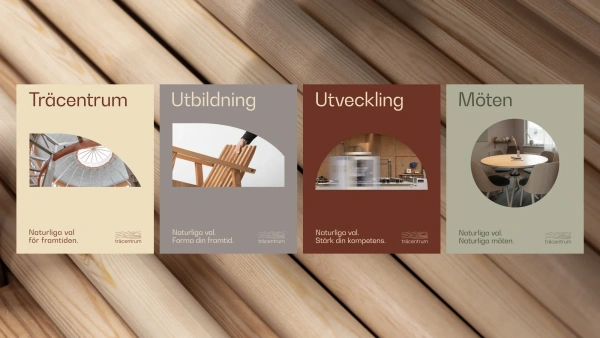 Med kunskap och erfarenhet skapar Träcentrum fler och fler arbetstillfällen för träindustrin, och så har det varit sedan mitten av 90-talet. Respekten för Träcentrums varumärke har därför varit stor för arbetet med identiteten. Med önskan om att göra en förflyttning i varumärket Träcentrum har vi skapat en visuell identitet som är stilren, modern och användarvänlig. Vi har utvecklat ett övergripande koncept, en ny logotyp, färger, typografi, grafiska element, en bildbank tillsammans med Robert Mendoza och en tonalitet som skapar en röd tråd i den visuella kommunikationen.
